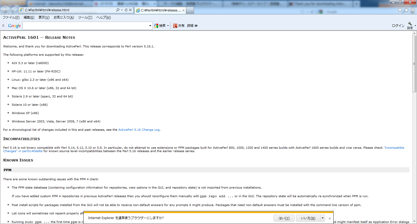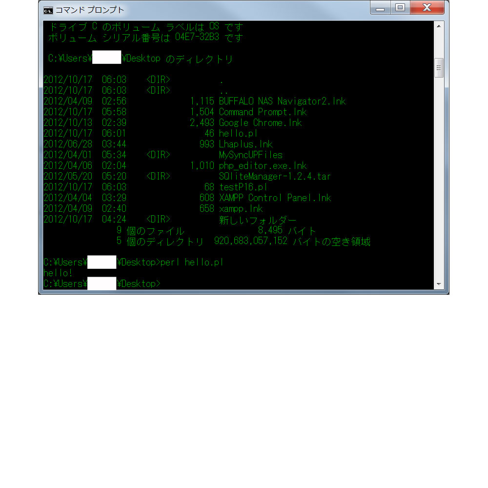 上記表示が確認できたら、Perl環境が作れている。