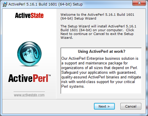以下のURLよりPerlを実行するための環境をダウンロードする。