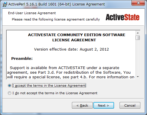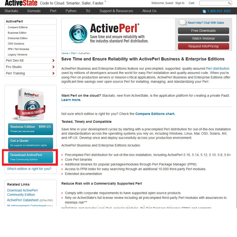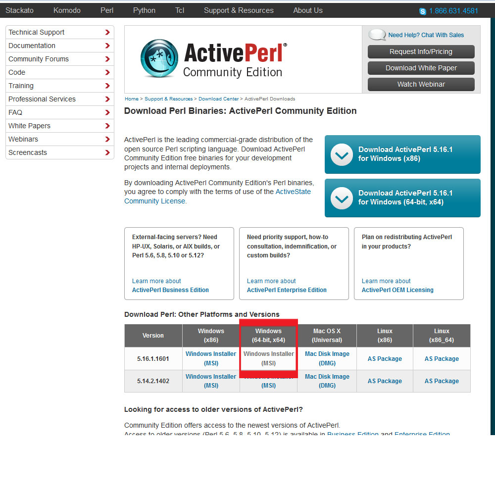 「 Dowlload ActivePerl (Free Community Edition)」を押下。