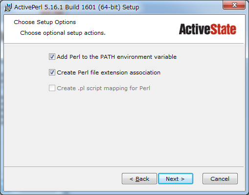 「 Add Perl ・・・ 」は、PCの環境変数のPATHに自動的に登録してくれる。